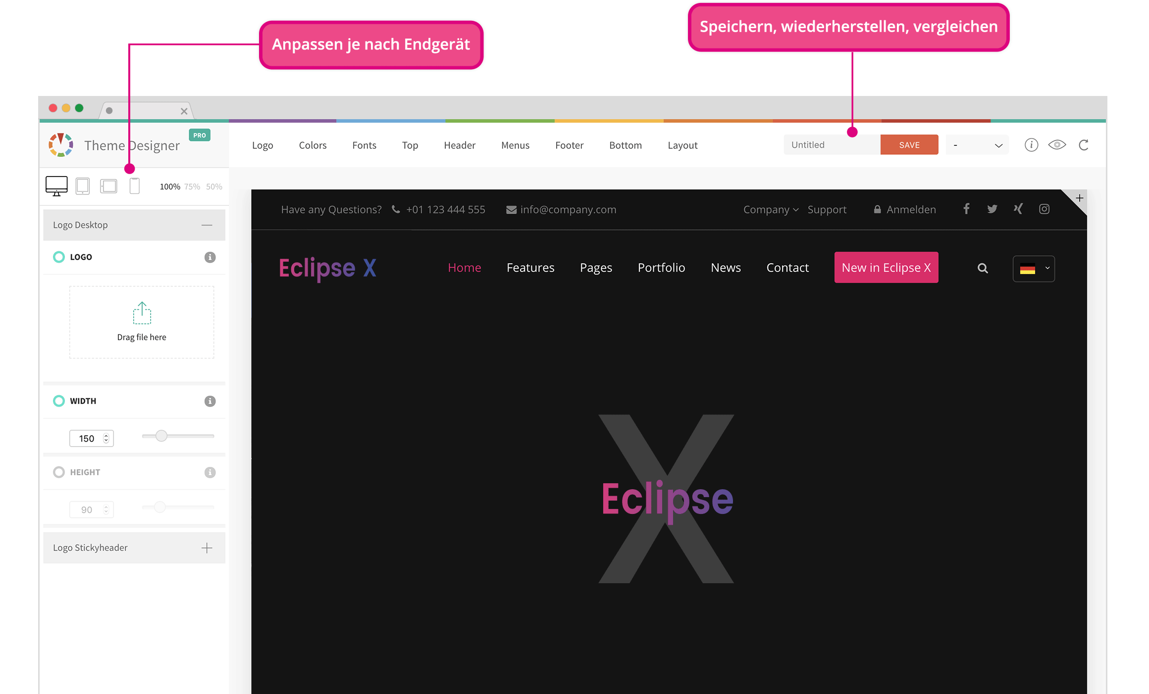Customize with a click for each device in real-time in the frontend.
