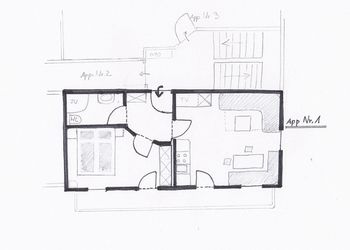 - gemütliche große Wohnküche mit Balkon, Essecke, Couch