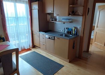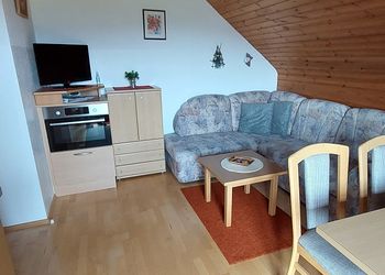 - gemütliche große Wohnküche mit Balkon, Essecke, Couch
